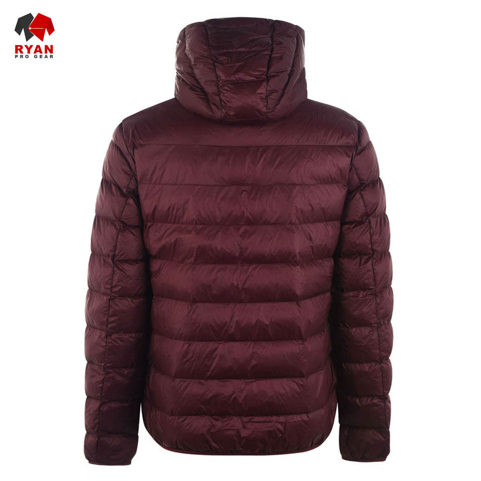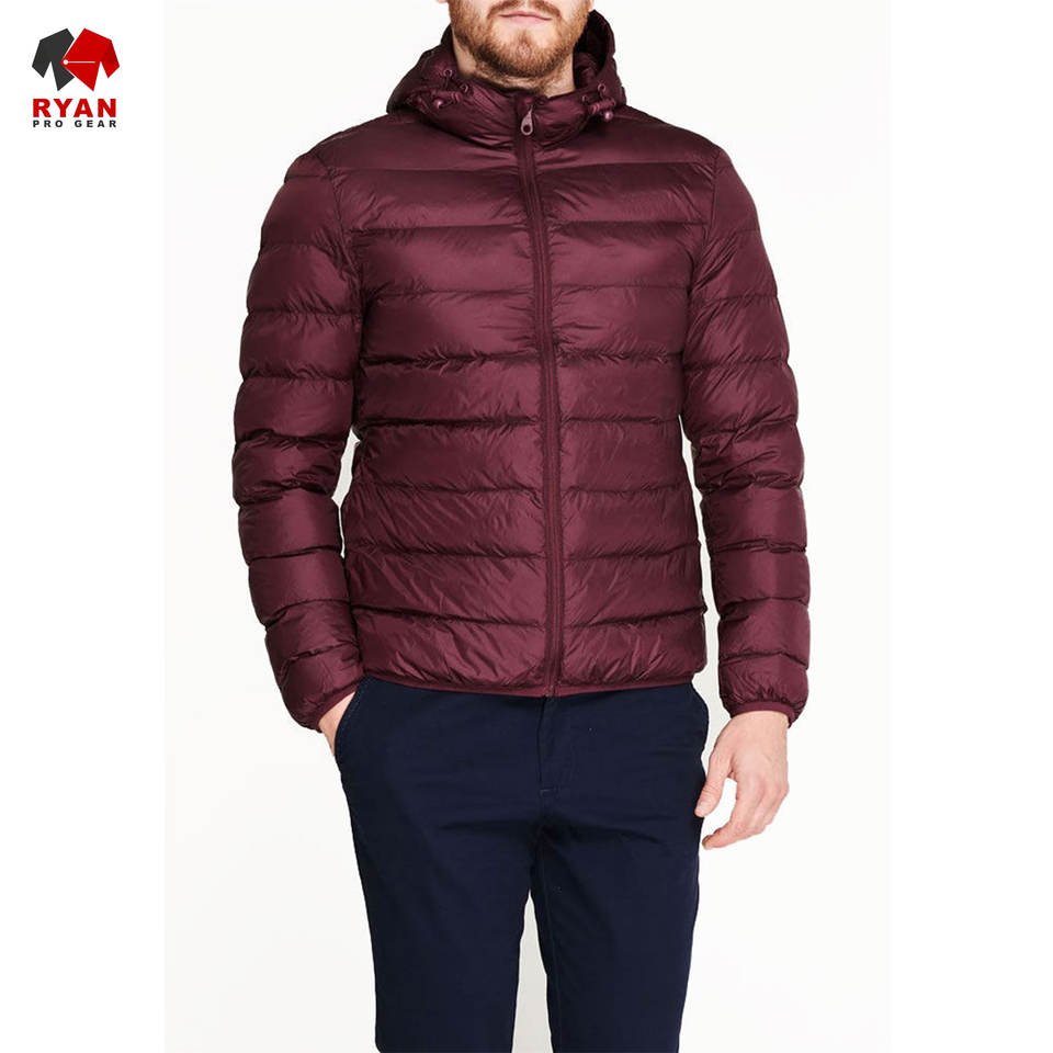 เสื้อแจ็คเก็ตพัฟเฟอร์กันน้ำสำหรับผู้ชายแบบมีฮู้ด แห้งเร็ว คุณภาพสูง ระบายอากาศได้ดี สำหรับฤดูหนาว ราคาขายส่ง ลายเรียบ