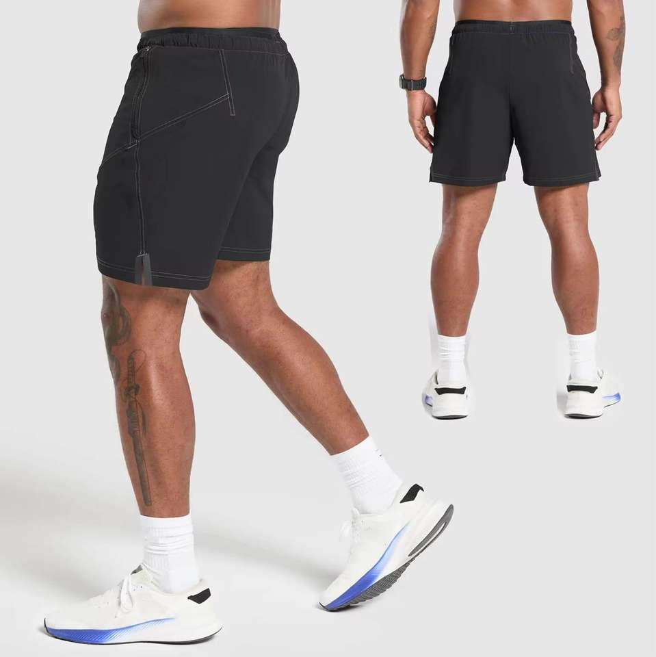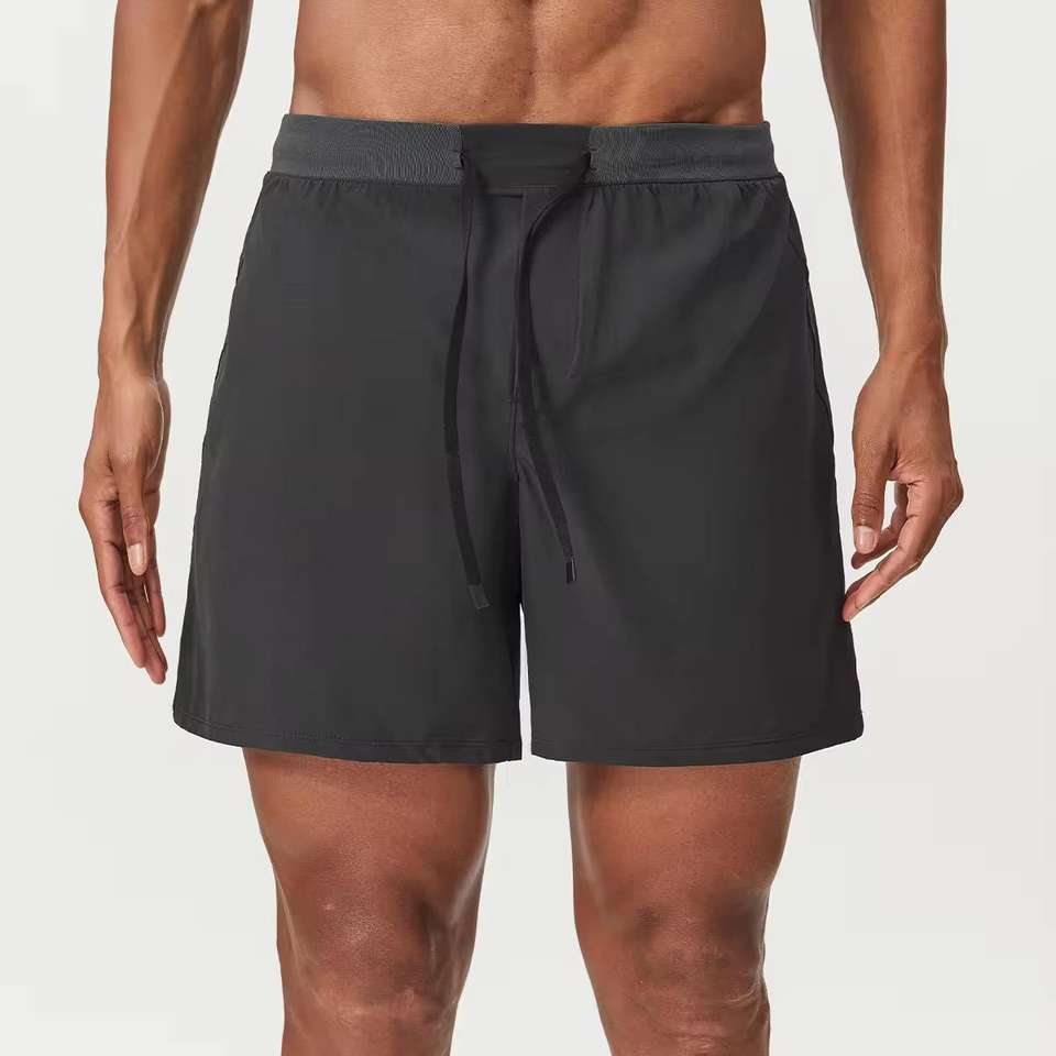 กางเกงขาสั้นออกกำลังกายผู้ชายแบบแห้งเร็ว ระบายอากาศได้ดี เอวยางยืด รับผลิตตามแบบ (OEM) ผ้าโพลีเอสเตอร์ 100%