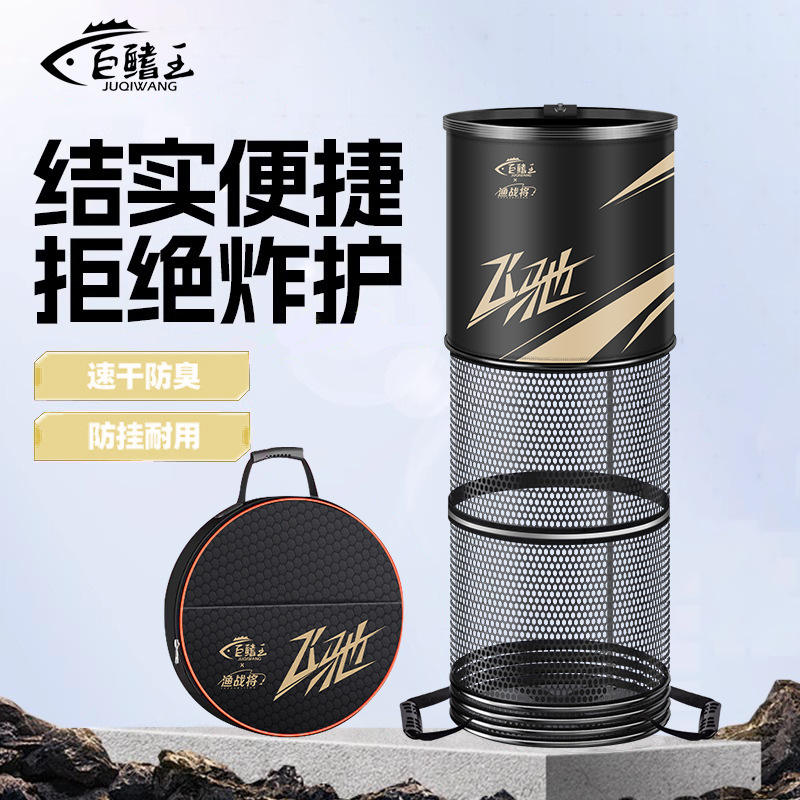 ตะกร้าใส่ปลาแห้งเร็วพร้อมหูหิ้วด้านบน กระเป๋าอเนกประสงค์สำหรับใส่อุปกรณ์ตกปลา สำหรับเก็บปลาเป็นๆ กระเป๋าตาข่ายทรงกลมแบบพกพา