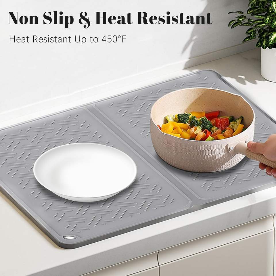 แผ่นรองจานทำจากหินไดอะตอมไมต์แบบพับเก็บได้สำหรับวางบนเคาน์เตอร์ห้องครัวทำจากซิลิโคนแห้งเร็ว