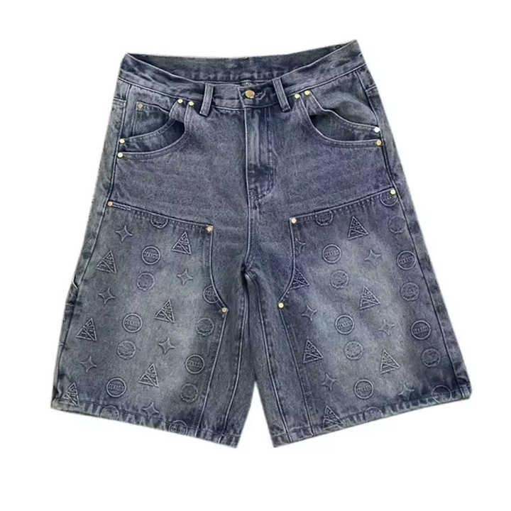 กางเกงยีนส์ขาสั้นระบายอากาศของผู้ชายแห้งเร็วผ้าคอตตอนลายนูนแบบสตรีทแวร์ออกแบบโลโก้ได้ตามต้องการ