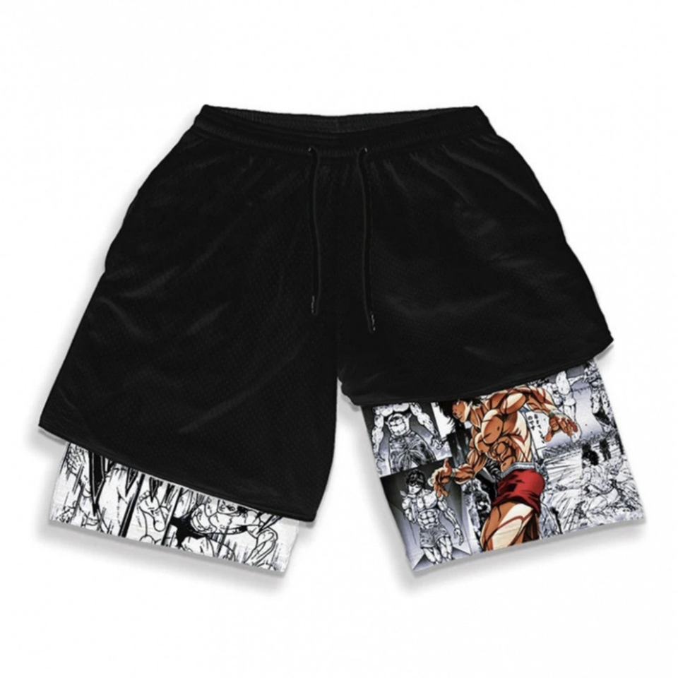 กางเกงขาสั้นกีฬาผู้ชายแห้งเร็ว เอวยางยืด ลายอนิเมะ สำหรับวิ่งออกกำลังกาย ฝึกซ้อม ฟิตเนส ช่วงฤดูร้อน