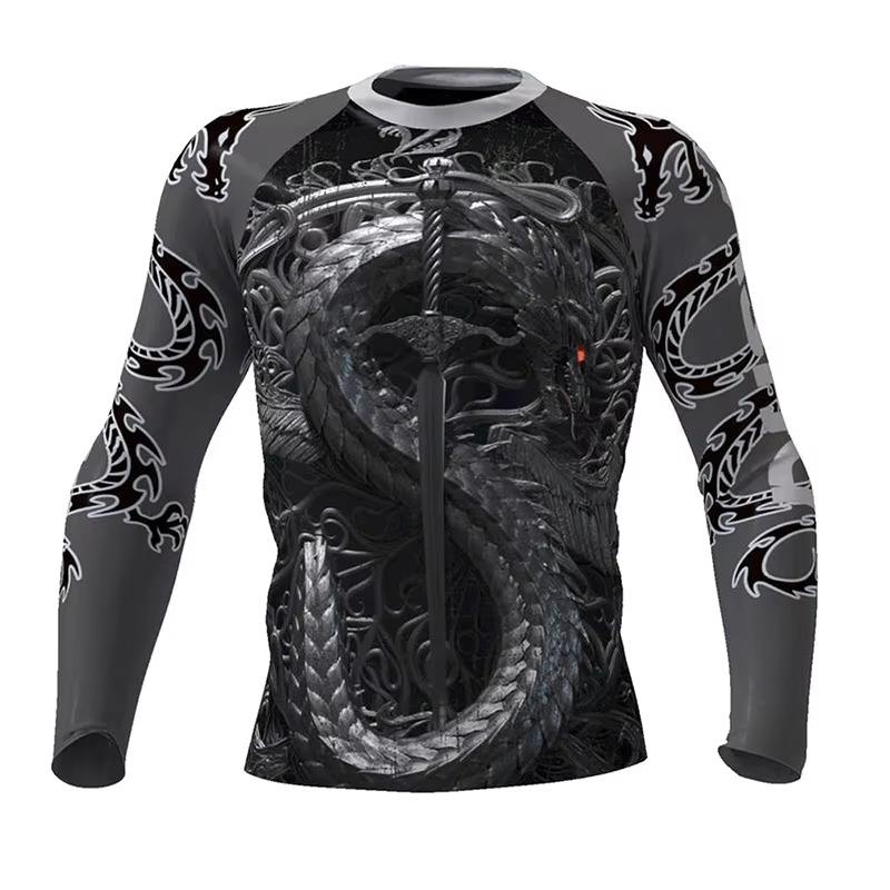 Quick Dry Men's Sublimation Compression Rash Guard Long Sleeve Fitness Shirt Gym Training BJJ MMA Sportswear