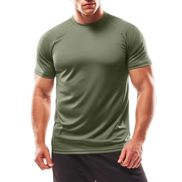 เสื้อยืดผู้ชายแบบแห้งเร็ว-100% โพลีเอสเตอร์คอกลมน้ำหนักเบาและสวมใส่สบายเหมาะสำหรับการออกกำลังกายตกปลาและชุดกีฬา