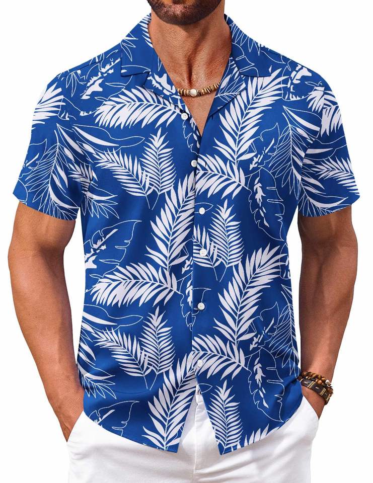 เสื้อเขตร้อนของผู้ชายระบายอากาศได้อย่างรวดเร็วชุดชายหาดลายดอกไม้แขนสั้นติดกระดุม