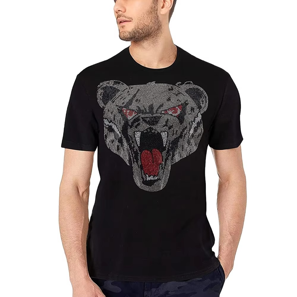 เสื้อยืดผู้ชายวัสดุระบายอากาศคอกลมแขนสั้นเสื้อออกกำลังกายกีฬาเสื้อออกกำลังกายประดับพลอยเทียมแห้งเร็ว