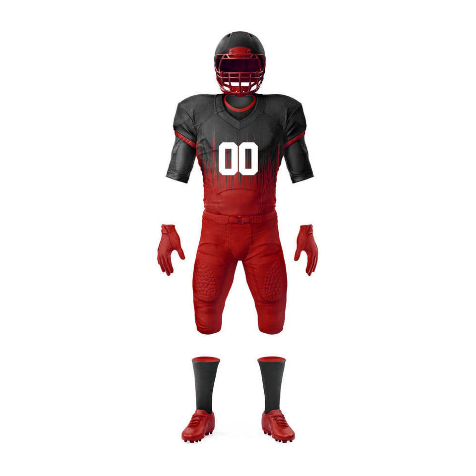 ชุดอเมริกันฟุตบอลไซส์ใหญ่ แห้งเร็ว พิมพ์ลายโลโก้ตามสั่งด้วยเทคนิค Sublimation คุณภาพสูง ระบายอากาศได้ดี ซับเหงื่อได้ดี