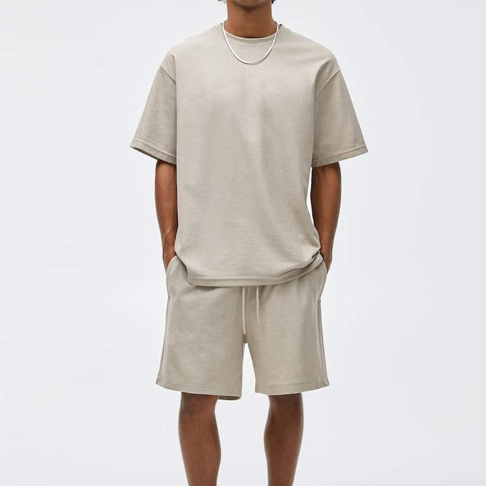 ชุดเซ็ตเสื้อยืดและกางเกงขาสั้นผ้าซาตินเนื้อนุ่ม ระบายอากาศได้ดี แห้งเร็ว ไซส์ใหญ่ สำหรับผู้ชาย ออกกำลังกายฤดูร้อน แบบ 2 ชิ้น ODM