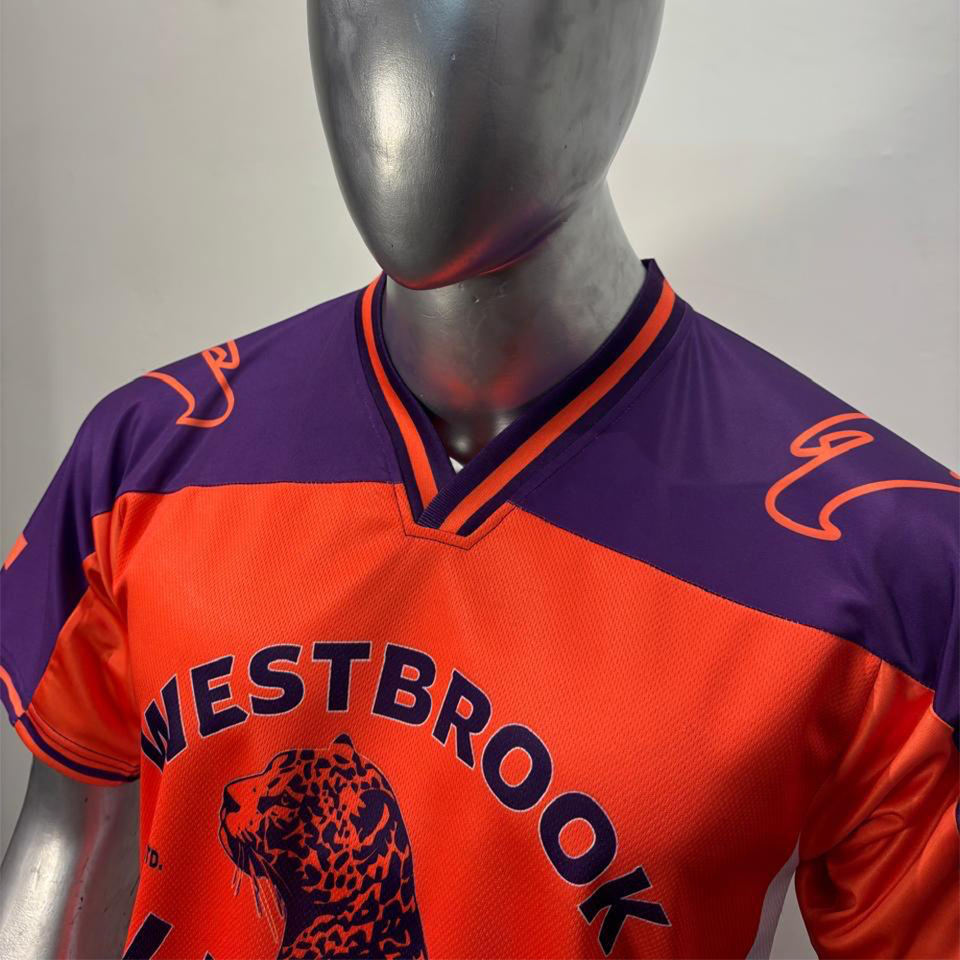 เสื้อฟุตบอลตาข่ายพิมพ์ลายแบบซับลิเมชั่น แห้งเร็ว ผลิตจากโพลีเอสเตอร์/คอตตอน ทรงปกติ รับสกรีนโลโก้ทีม แขนสั้น สำหรับผู้ใหญ่