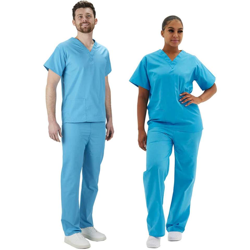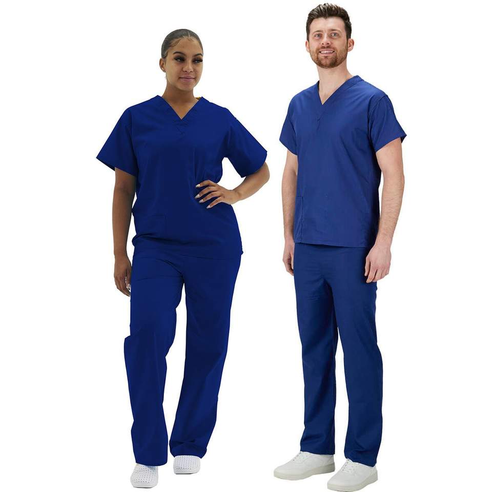 ชุดยูนิฟอร์มพยาบาลแบบแห้งเร็ว ผ้าคอตตอนผสม ยืดหยุ่นได้ รับผลิตตามแบบ (OEM) พร้อมปักโลโก้ ชุดสครับสำหรับแพทย์และพยาบาลในโรงพยาบาล ชุดยูนิเซ็กซ์ ตรวจจับการรั่วไหลของของเหลว