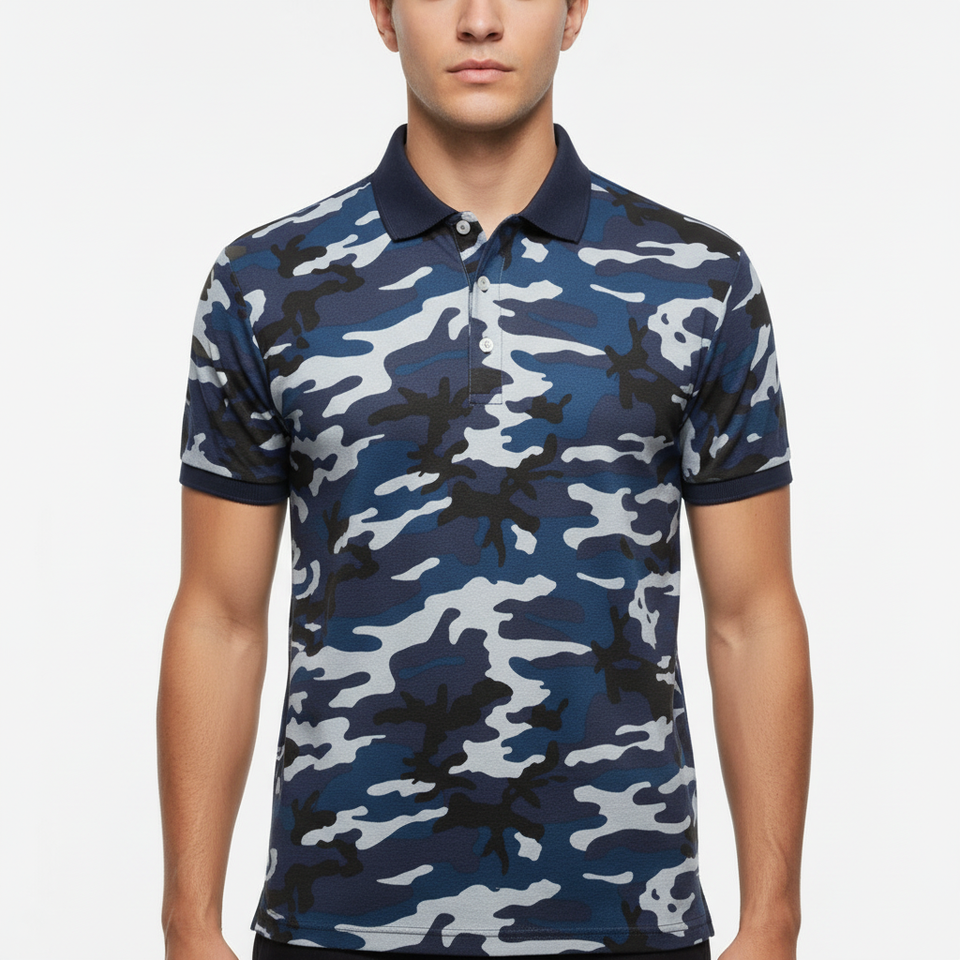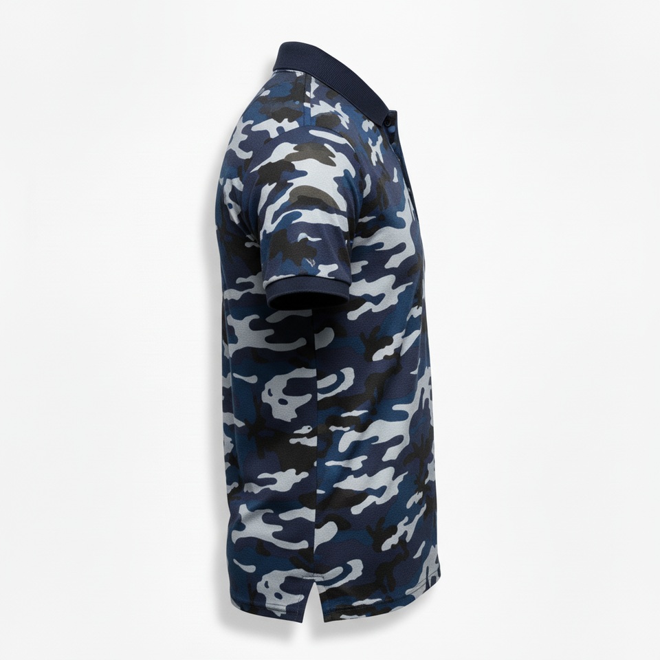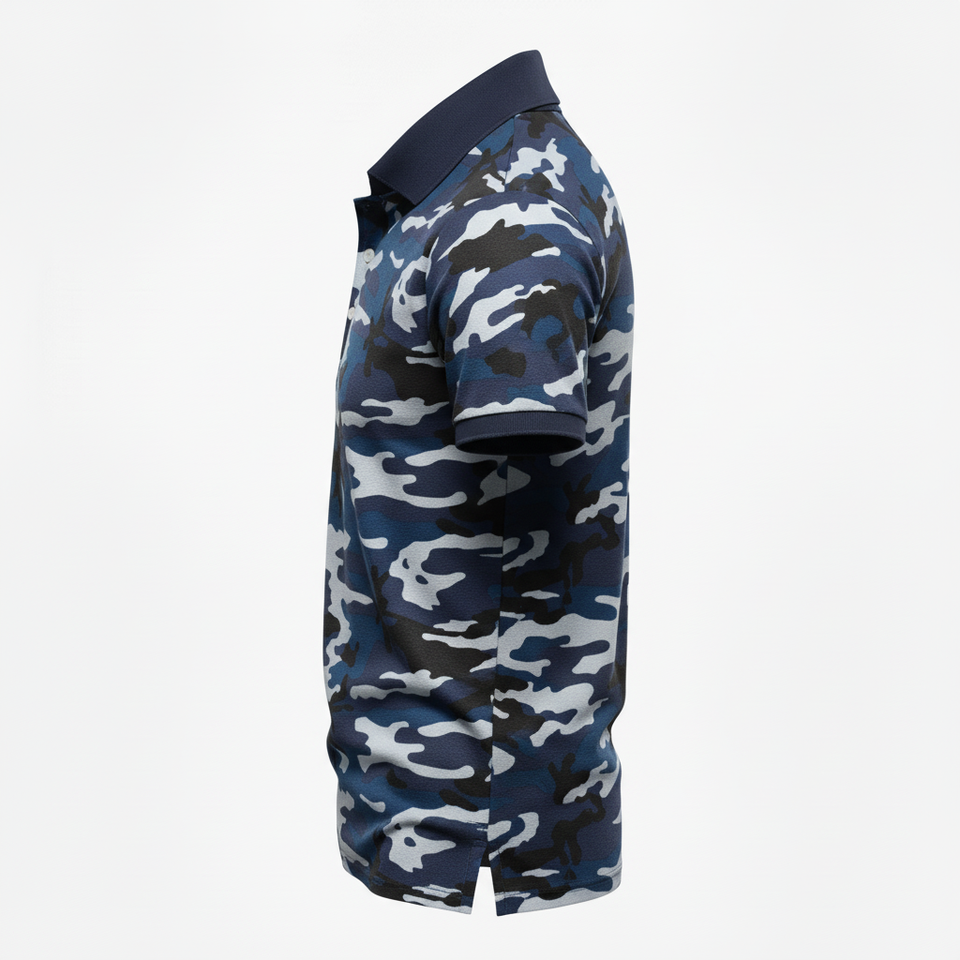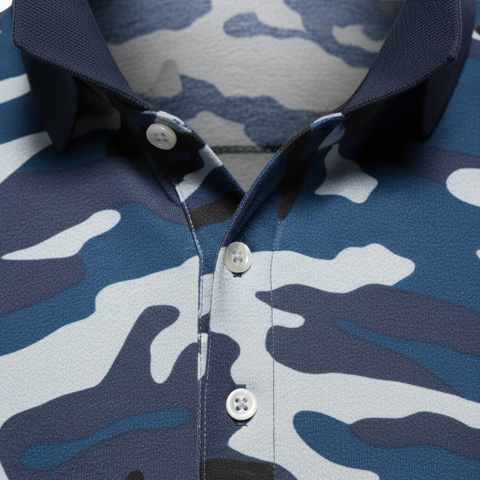 เสื้อโปโลกอล์ฟแขนสั้นพิมพ์ลายทั้งตัว แห้งเร็ว คอปกแข็งแรง ทนทาน ผลิตจากผ้าโพลีเอสเตอร์รีไซเคิล ระบายอากาศได้ดี