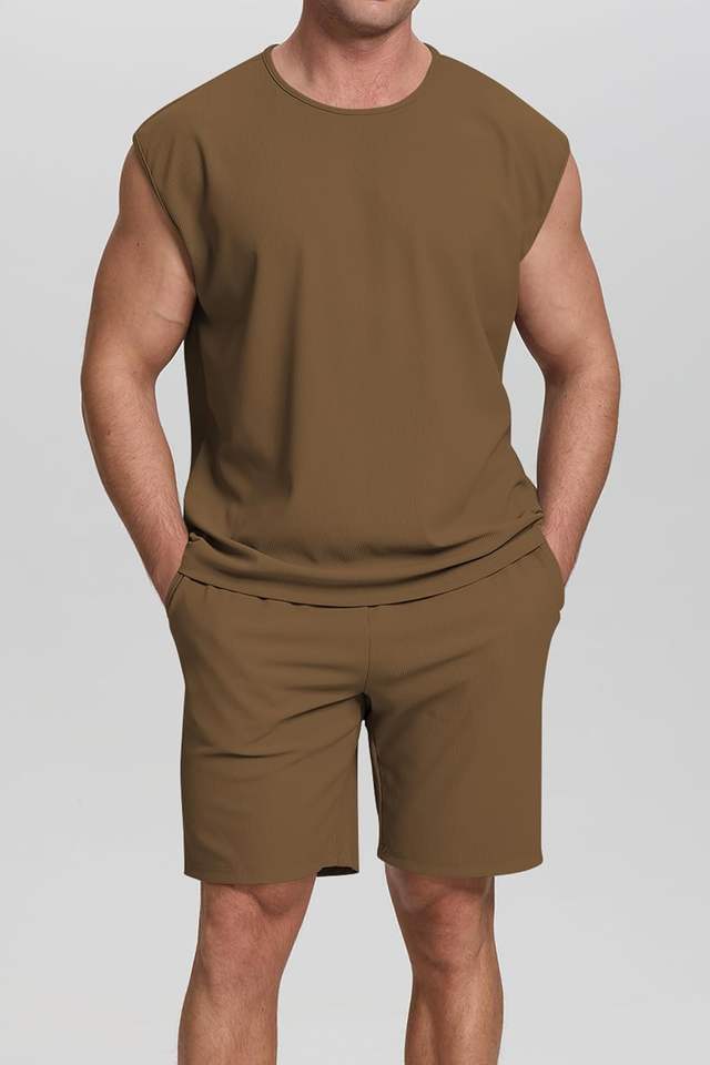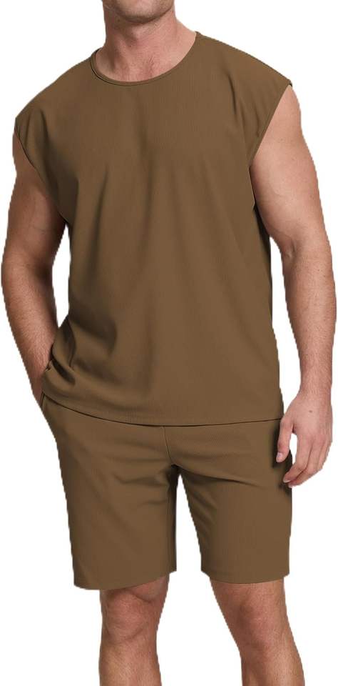 ชุดสตรีทแห้งเร็วเสื้อยิมสำหรับผู้ชายชุดกางเกงขาสั้นผ้านุ่มใส่สบายน้ำหนักเบามีสไตล์ยั่งยืนสำหรับผู้ชาย