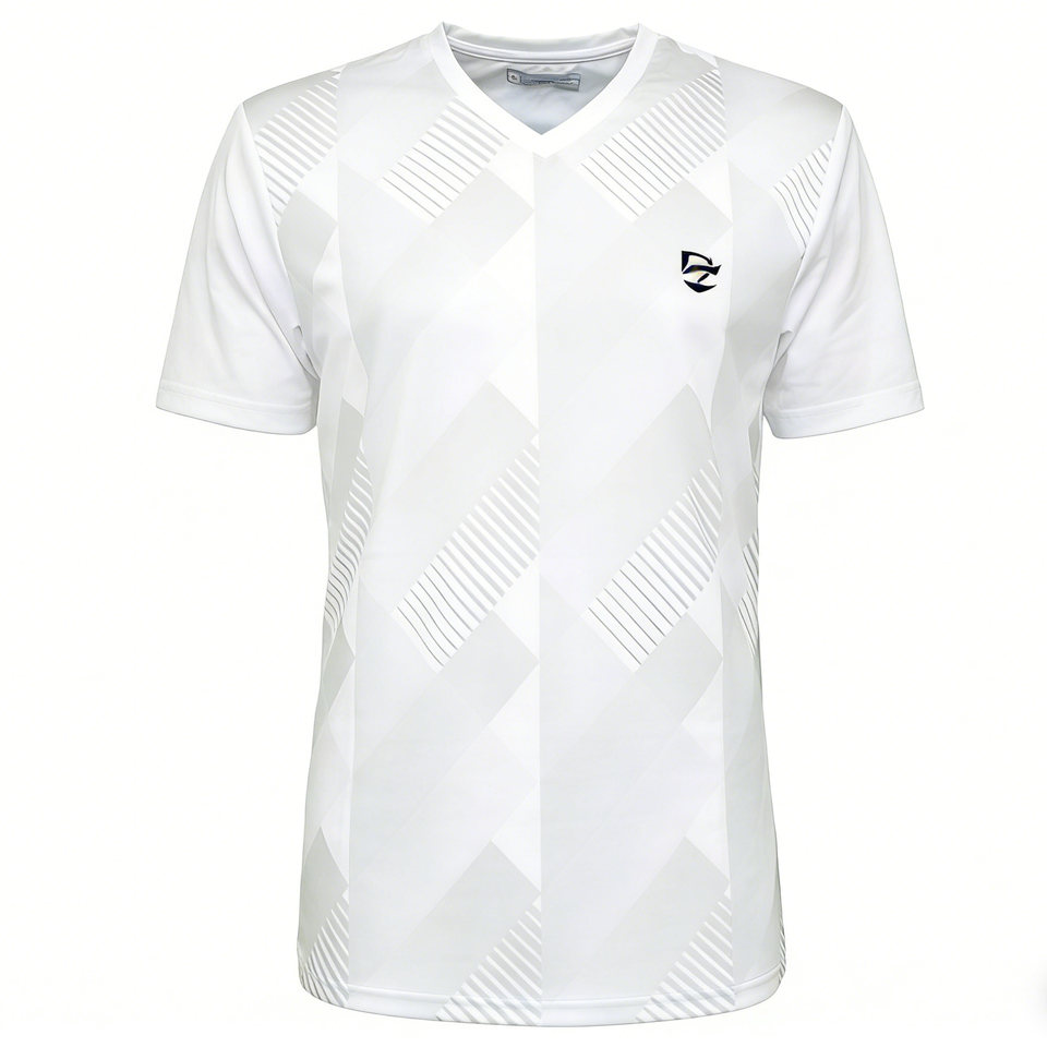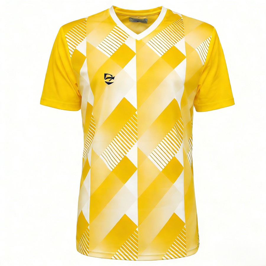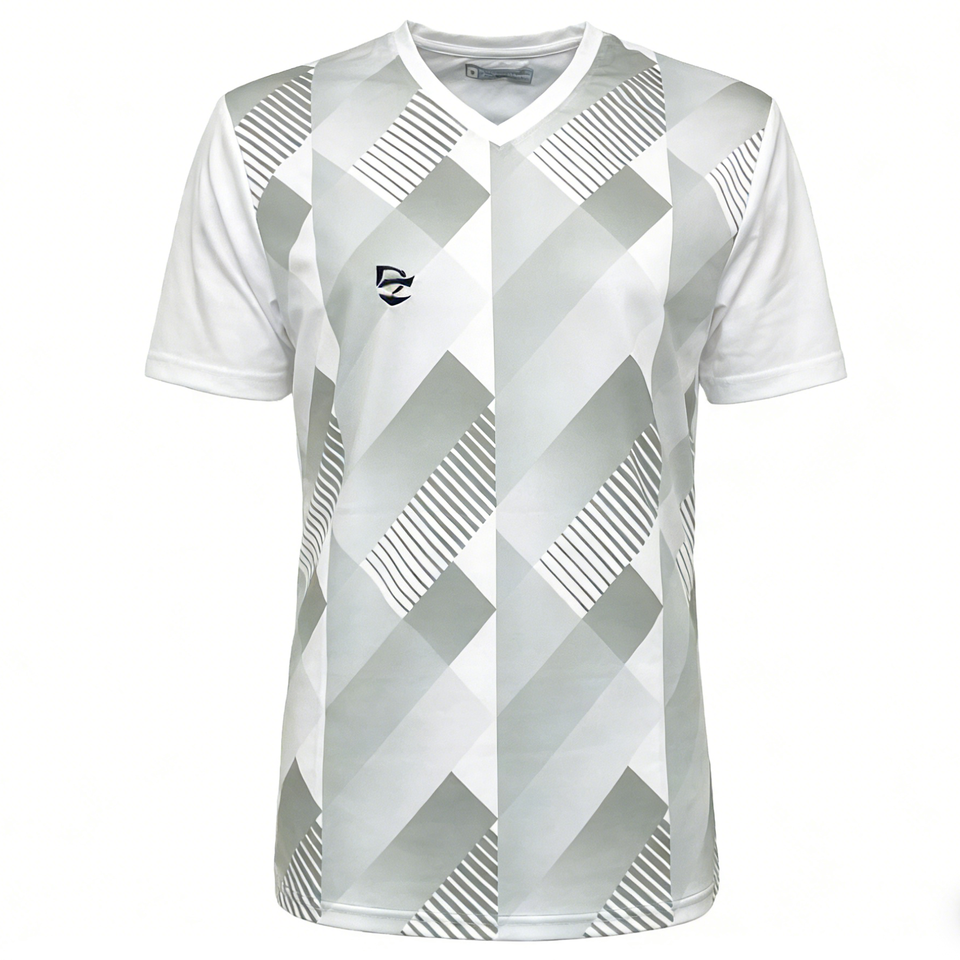 เสื้อฟุตบอลพิมพ์ลายแบบซับลิเมชั่น แห้งเร็ว สกรีนชื่อทีม โลโก้ทีม สำหรับงานอีเว้นท์ ผู้ชาย คอวี แขนสั้น