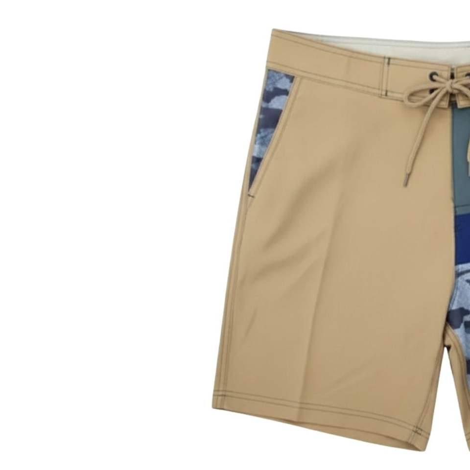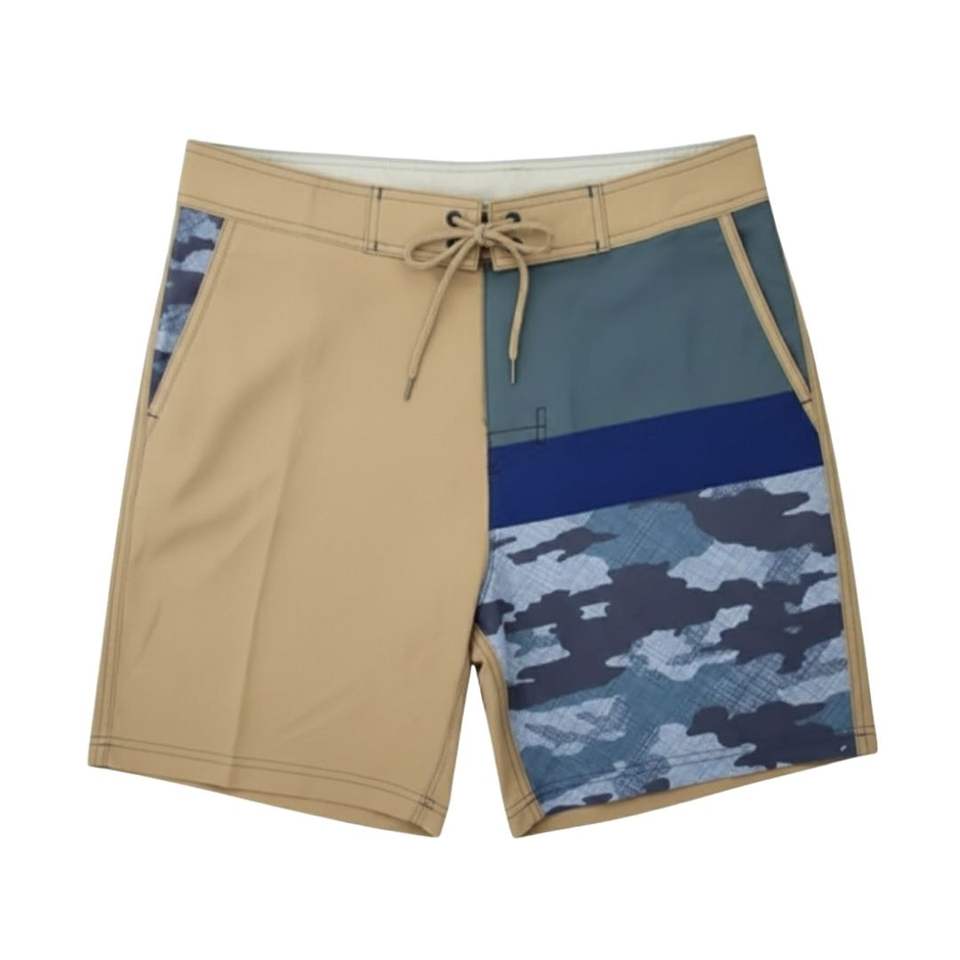 กางเกงว่ายน้ำลายทางสีกากีแบบแห้งเร็วสำหรับทุกเพศ ดีไซน์สีตัดกันตามสั่ง ชุดเล่นเซิร์ฟ ป้องกันรังสียูวี ระบายอากาศได้ดี กางเกงชายหาด