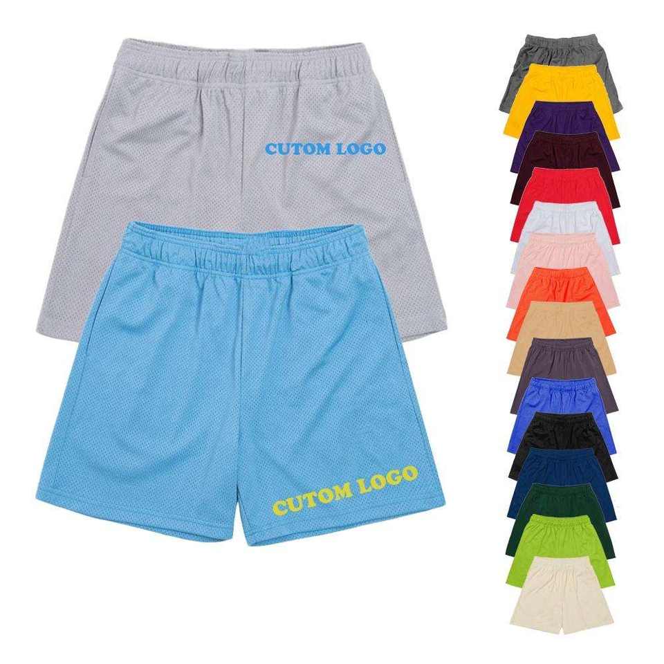 กางเกงขาสั้นออกกำลังกายแห้งเร็วสำหรับผู้ชาย ผ้าตาข่าย 100% โพลีเอสเตอร์/คอตตอน สำหรับเล่นบาสเก็ตบอล รับสกรีนโลโก้ตามแบบ ฤดูร้อน