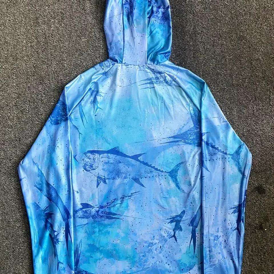 เสื้อตกปลาแห้งเร็ว ระบายอากาศดี UPF 50+ แขนยาว ออกแบบเองได้ มีฮู้ด ขาย