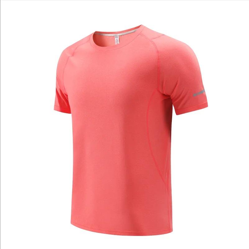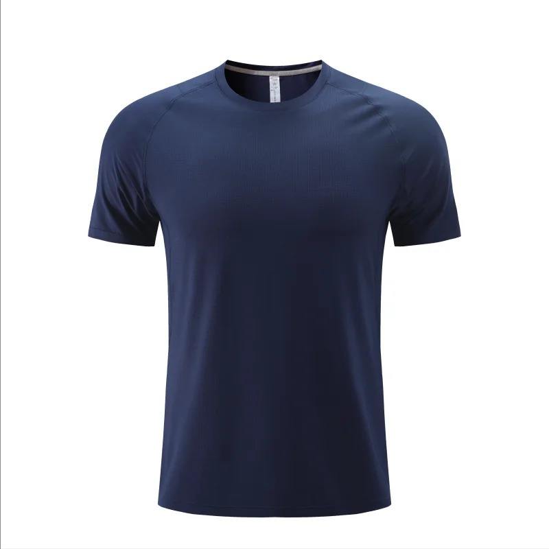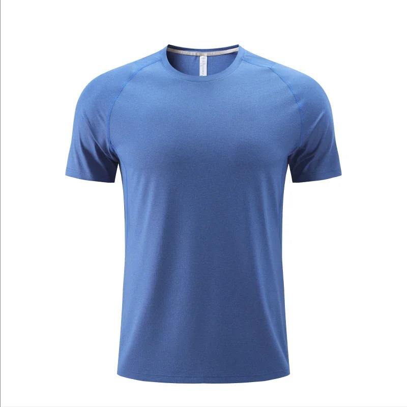 เสื้อยืดผู้ชายแบบแห้งเร็ว พิมพ์ลายโลโก้ด้วยความร้อน ผลิตจากผ้าโพลีเอสเตอร์/คอตตอนผสม เป็นมิตรกับสิ่งแวดล้อม แขนสั้น สีพื้น มีหลายขนาด