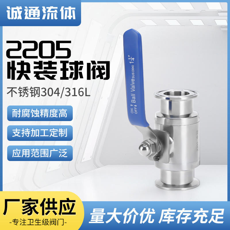 บอลวาล์วแบบติดตั้งเร็ว รุ่น 2205 ควบคุมด้วยมือ ทนทานต่อการกัดกร่อน เหมาะสำหรับอุปกรณ์ชีวเภสัชกรรม นม และเครื่องดื่ม