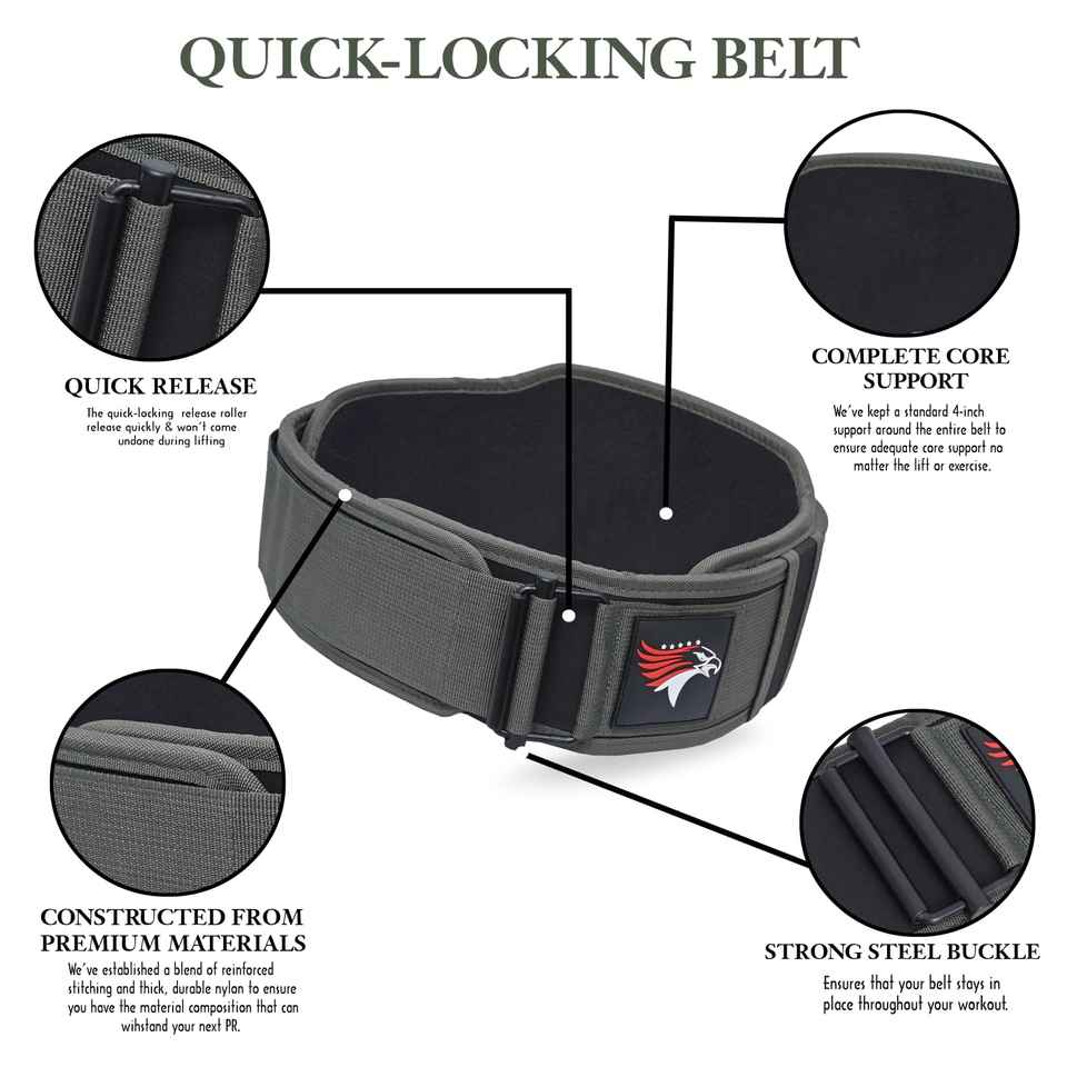 เข็มขัดยกน้ำหนักแบบล็อกเร็ว4นิ้วเข็มขัดพยุงหลังสำหรับออกกำลังกาย
