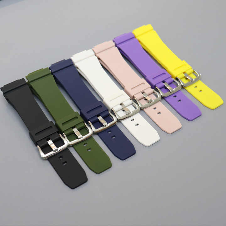 สายนาฬิกาเรซิน TPU Gm-5600แบบปลดออกได้อย่างรวดเร็วสายนาฬิกาอัจฉริยะสีดำเหลืองม่วงสำหรับรุ่น GM GBM GBM Gbm-2100/2110