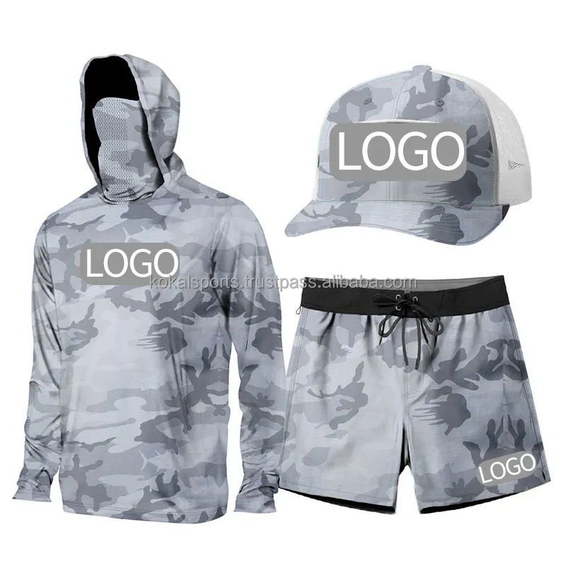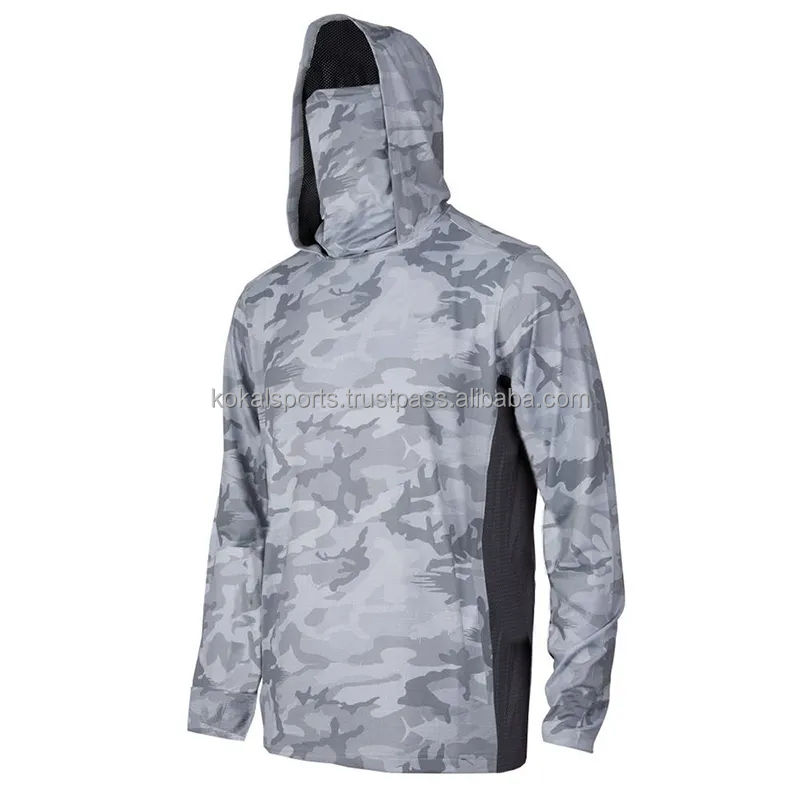 เสื้อฮู้ดตกปลาแบบมีฮู้ดพร้อมหน้ากาก แห้งเร็ว ระบายอากาศได้ดี ไซส์ใหญ่ กันน้ำ แขนยาว ออกแบบได้ตามต้องการ