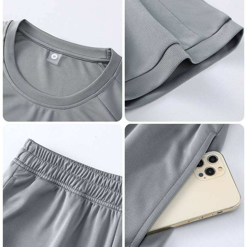 เสื้อยืดโปโลทรงหลวมไหล่ตกพิมพ์โลโก้แบรนด์สตรีทแวร์ ผ้าคอตตอนผสม 50% แขนสั้น ทรงบ็อกซี่ ชุดเซ็ต 2 ชิ้น