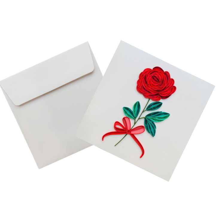 การ์ดควิลลิ่งลายก้านดอกกุหลาบ การ์ดอวยพรทำมือพร้อมซอง การ์ดควิลลิ่งลายดอกไม้พิเศษสำหรับทุกโอกาส