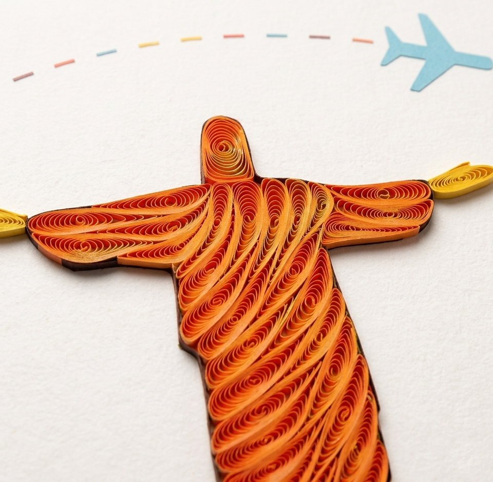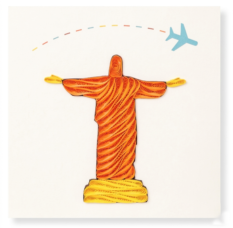 การ์ดควิลลิ่งพระเยซูผู้ทรงช่วยให้รอด ดีไซน์ริโอ บราซิล การ์ดอวยพรทำมือ ซองจดหมาย งานศิลปะกระดาษ ของขวัญ ของที่ระลึก ของตกแต่งวันหยุด