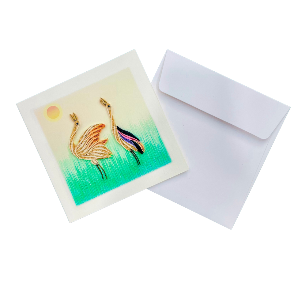 การ์ดควิลลิ่งลายเครนคู่ ธีมธรรมชาติ นกที่สง่างาม การ์ดควิลลิ่งลายศิลปะ พร้อมซองจดหมาย การ์ดอวยพรทำมือสำหรับเป็นของขวัญ