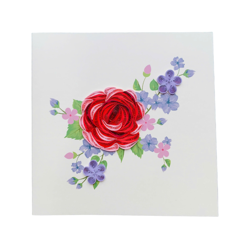 การ์ดควิลลิ่ง ดอกกุหลาบแดง การ์ดอวยพรทำมือพร้อมซอง การ์ดควิลลิ่งลายดอกไม้พิเศษสำหรับทุกโอกาส งานฝีมือกระดาษ