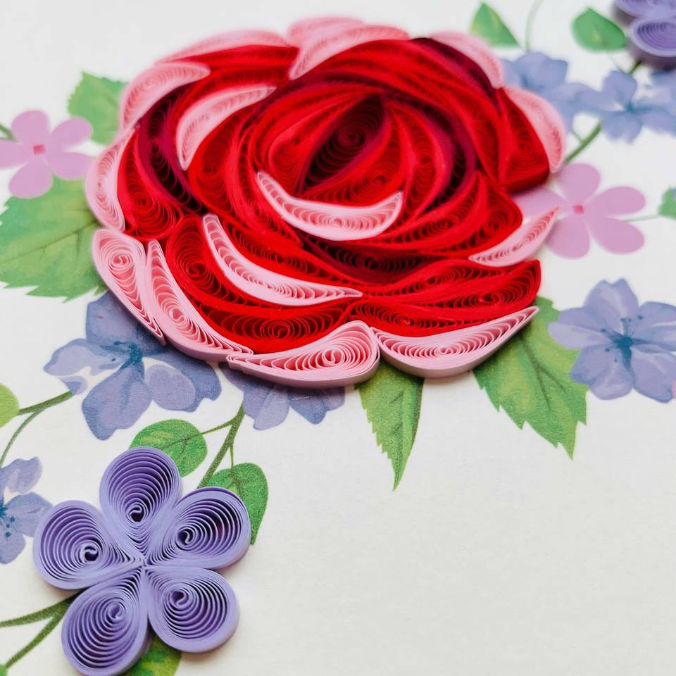 การ์ดกระดาษม้วนทำมือ ลายดอกกุหลาบสีแดง
