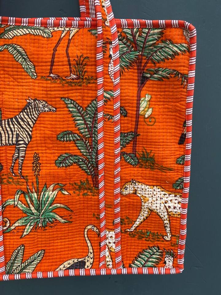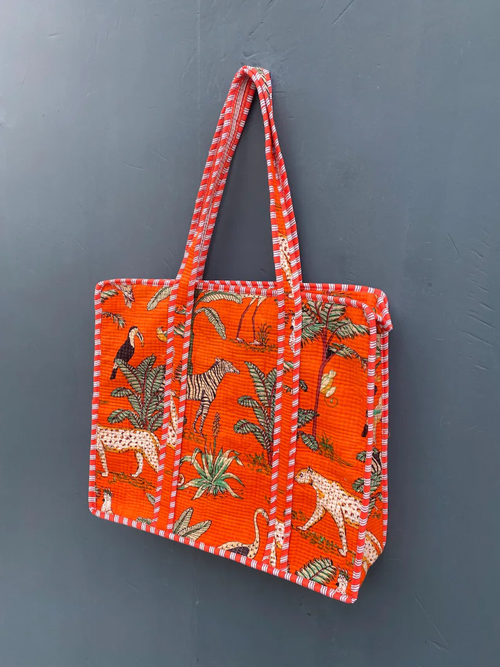 กระเป๋าโท้ทผ้าฝ้ายลายควิลท์พร้อมสายสะพายไหล่ ลายป่าสไตล์โบโฮ ความจุ 1-1.9 ลิตร