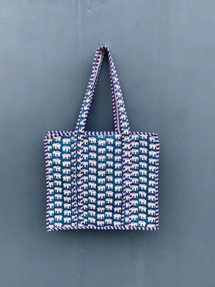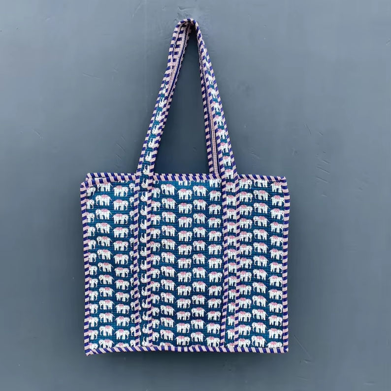 กระเป๋าโท้ทผ้าฝ้ายลายควิลท์พร้อมสายสะพายไหล่ ปิดแบบเปิด ลายป่าสไตล์โบโฮ ความจุ 1-1.9 ลิตร