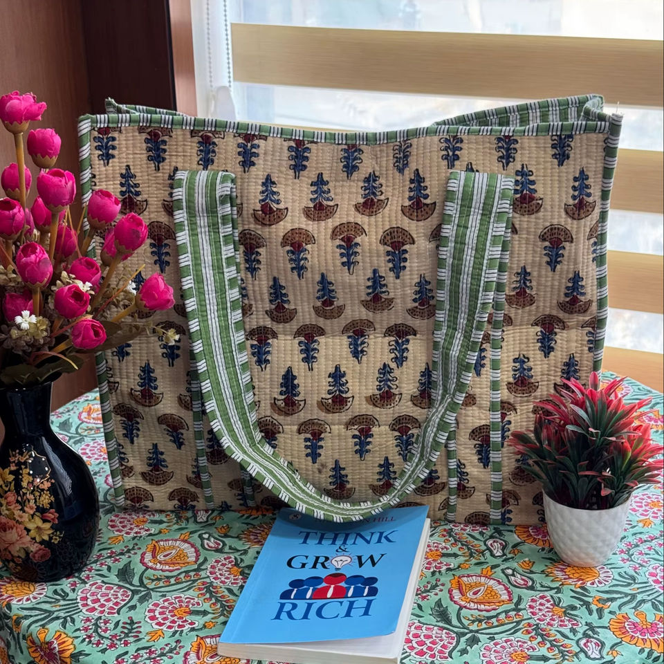 กระเป๋าโท้ทผ้าฝ้ายลายดอกกุหลาบขนาดใหญ่แบบสองด้าน พิมพ์ลายด้วยมือ เป็นมิตรกับสิ่งแวดล้อม ใช้ซ้ำได้ เหมาะสำหรับใส่ของช้อปปิ้ง มีสายสะพายสองเส้น เปิดได้