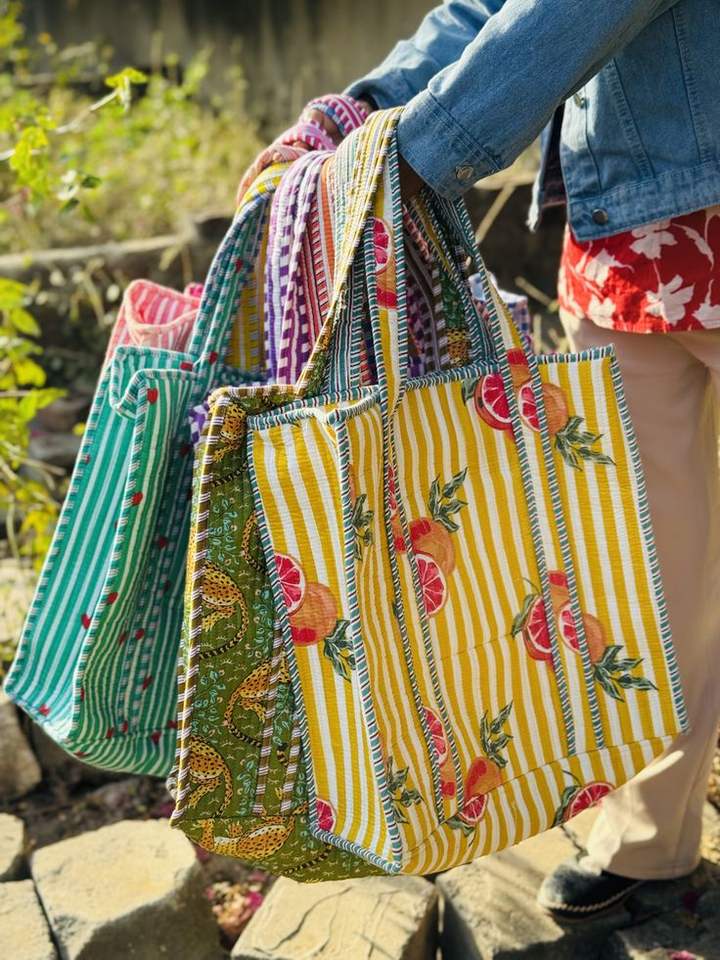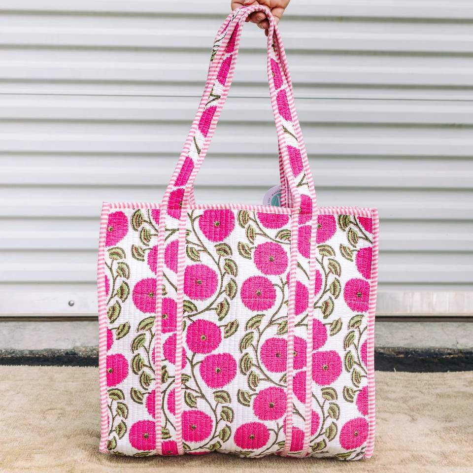 กระเป๋าถือสะพายไหล่ลายดอกไม้ผ้าฝ้ายอินเดียทำมือสไตล์วินเทจสำหรับผู้หญิง พิมพ์ลายด้วยมือแบบบล็อก กระเป๋าโท้ทแบบเย็บติดกัน ปิดด้วยซิป เหมาะสำหรับไปทะเล ฤดูร้อน ฤดูหนาว