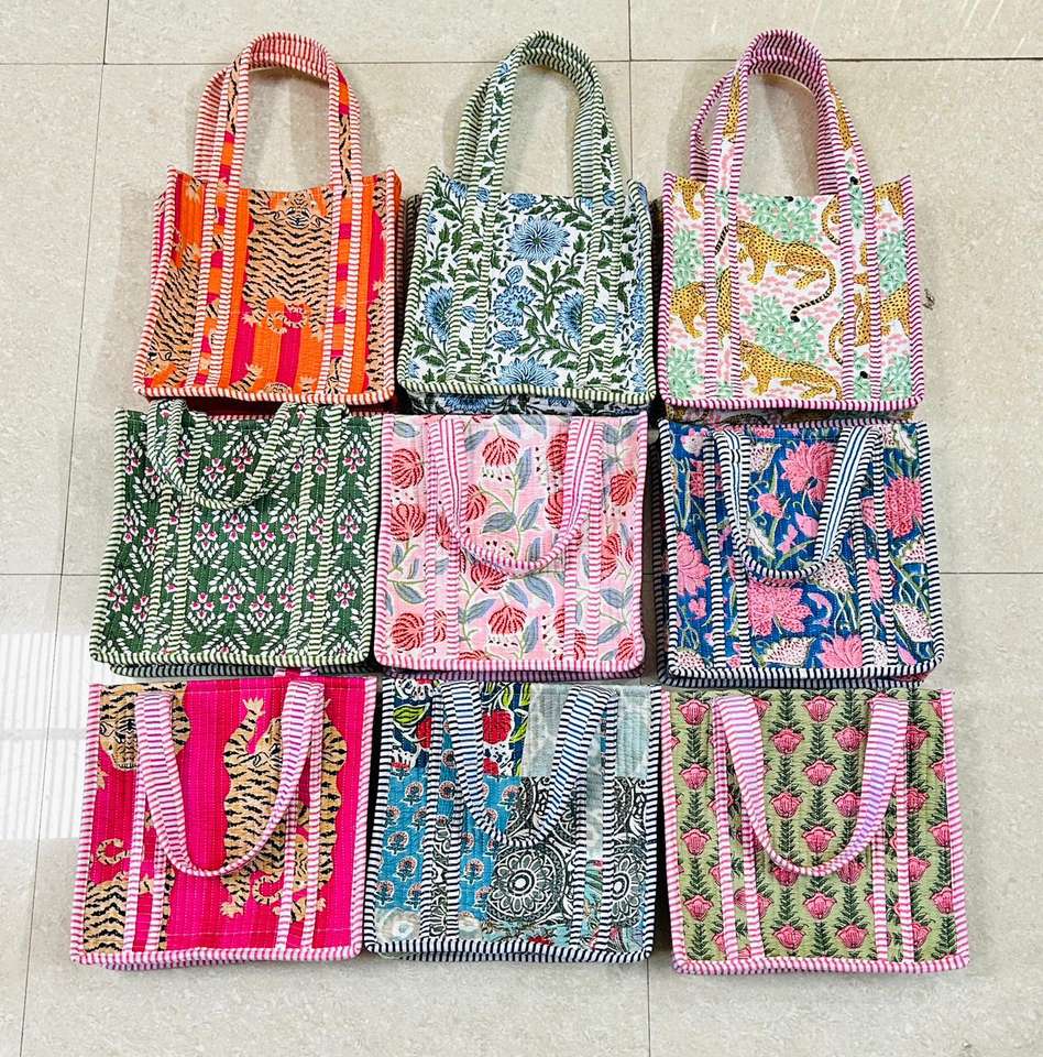 กระเป๋าถือผ้าฝ้ายลายดอกไม้เล็กๆ แบบเย็บติดกัน น้ำหนักเบา เป็นมิตรกับสิ่งแวดล้อม เหมาะสำหรับใช้ในชีวิตประจำวันและเดินทาง