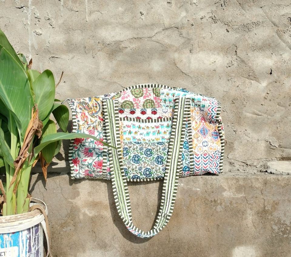 การทํางานแพทช์ผ้าฝ้ายผ้านวม ถุงสิริแพทช์หลากสีขนาดใหญ่แบบพลิกกลับได้ เป็นมิตรกับสิ่งแวดล้อมเพื่อการช็อปปิ้งของชําที่ทนทานและทนทาน