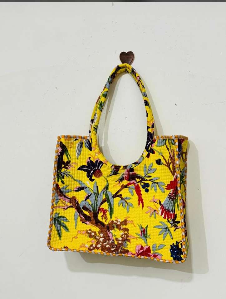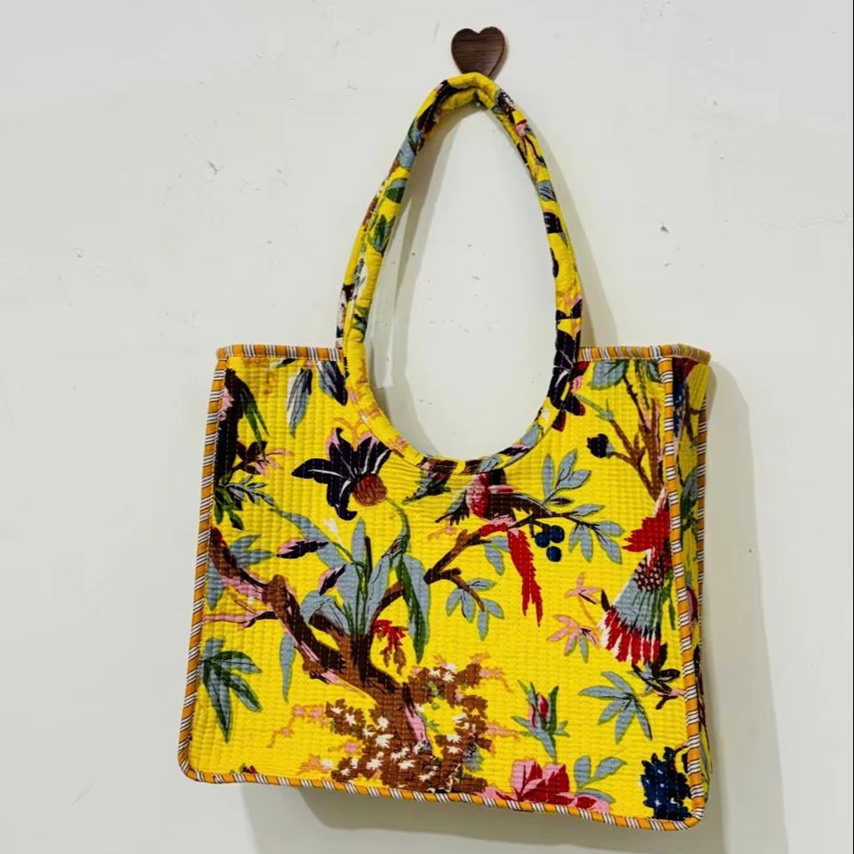 กระเป๋าสะพายไหล่ผ้าคอตตอนแบบเปิดด้านบนสีเหลืองขนาดใหญ่เปิดได้สำหรับเดินทางฤดูร้อน