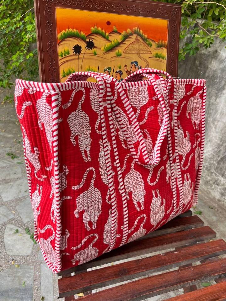 กระเป๋าผ้าฝ้ายลายควิลท์ งานแฮนด์เมดสไตล์อินเดีย พิมพ์ลายบล็อกแบบดั้งเดิม เหมาะสำหรับเดินทาง ช้อปปิ้ง สะพายไหล่