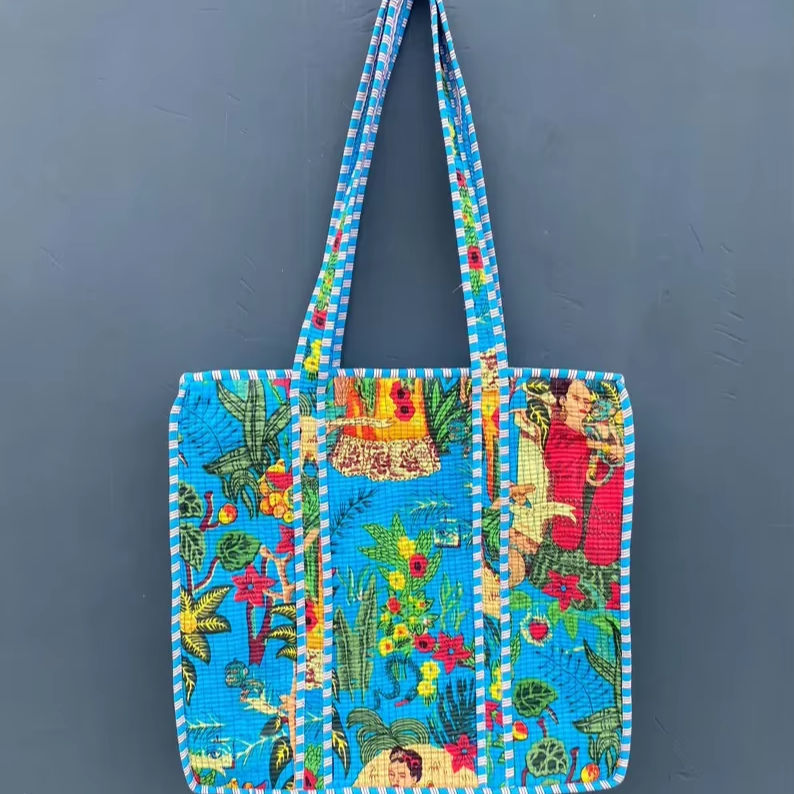 กระเป๋าผ้าฝ้ายลายปักสไตล์โบโฮ ลายป่า รูปทรงถัง สายสะพายไหล่ ความจุ 1-1.9 ลิตร