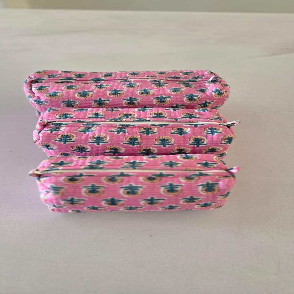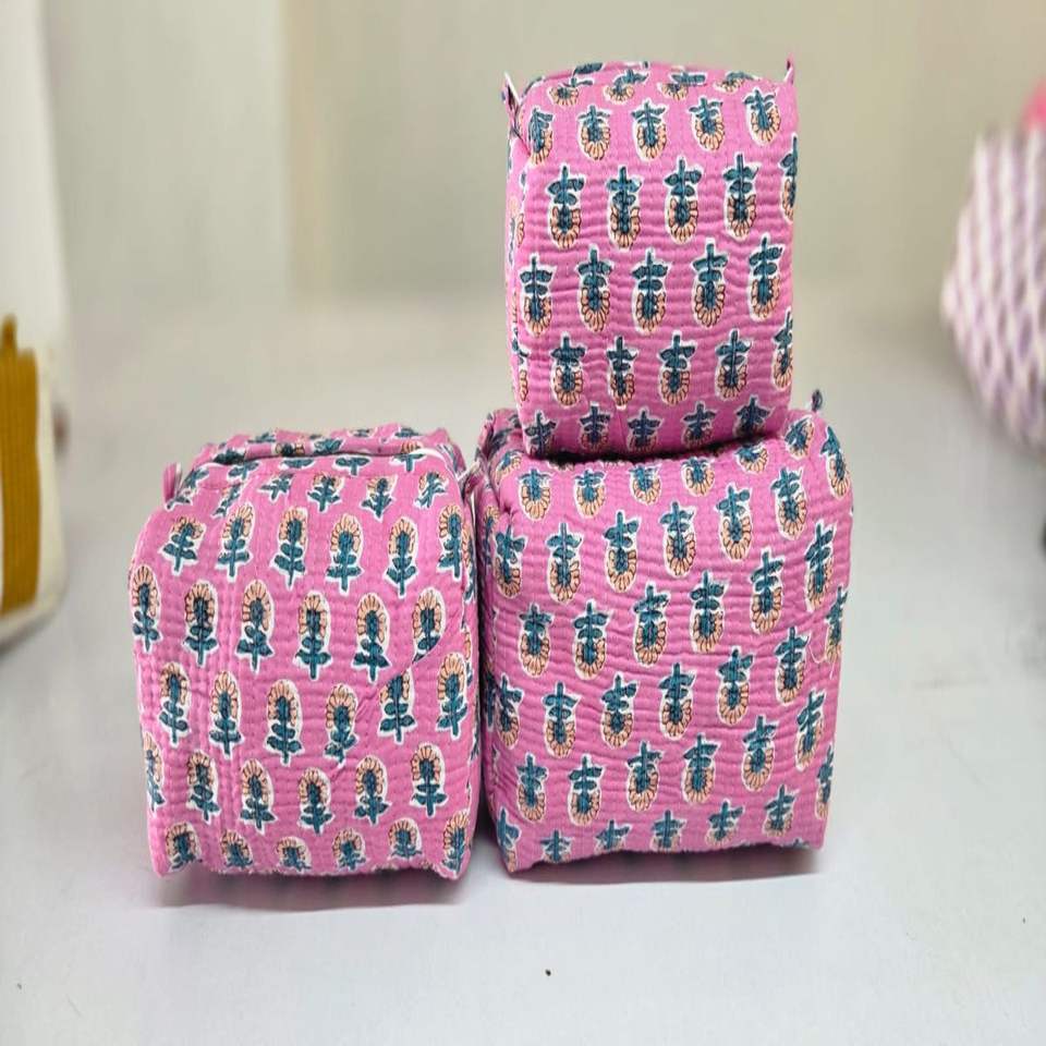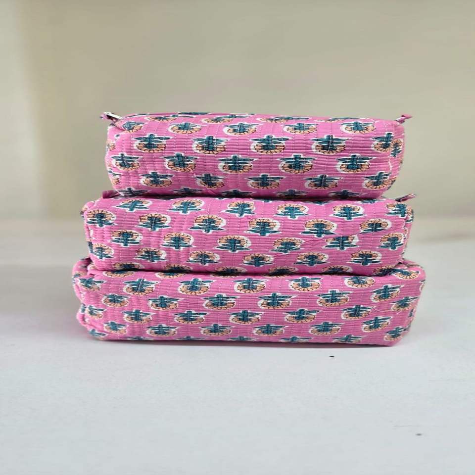 ชุดกระเป๋าเครื่องสำอางแบบมีเชือกผูก ผ้าฝ้ายลายควิลท์ สำหรับเดินทางและใช้ในชีวิตประจำวัน จำนวน 3 ใบ