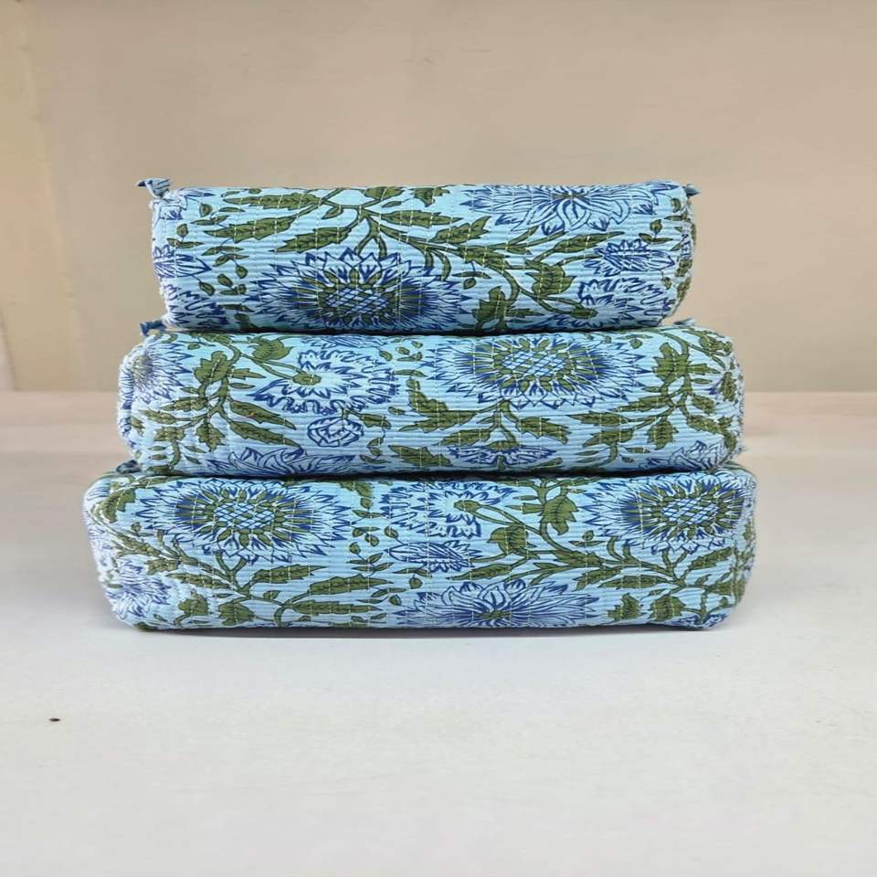 ชุดกระเป๋าเครื่องสำอางแบบมีเชือกผูก ผ้าฝ้ายลายควิลท์ สำหรับเดินทางและใช้ในชีวิตประจำวัน จำนวน 3 ใบ