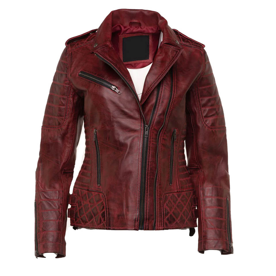 แจ็คเก็ตหนังเย็บลายแบบควิลท์พร้อมซิปคู่ แจ็คเก็ตหนังสั่งทำพิเศษสำหรับผู้หญิง รับผลิตแบรนด์ OEM ผู้จัดจำหน่ายสินค้าจำนวนมาก เสื้อแจ็คเก็ตหนังแท้