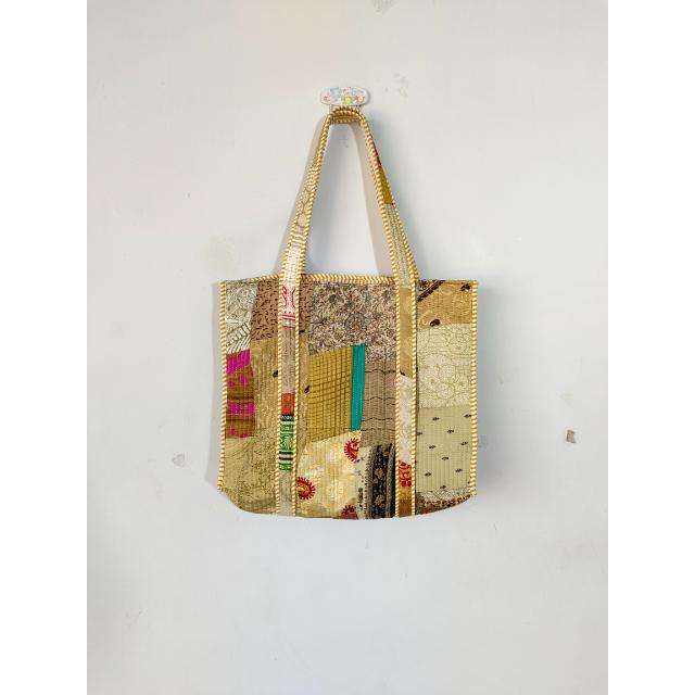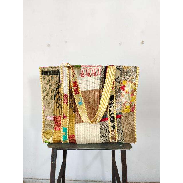 กระเป๋าผ้าไหมงานเย็บปะทำมือทำจากผ้าควิลท์พิมพ์ลายด้วยมือกระเป๋าโท้ทใบใหญ่แบบย้อนกลับได้เป็นมิตรกับสิ่งแวดล้อม