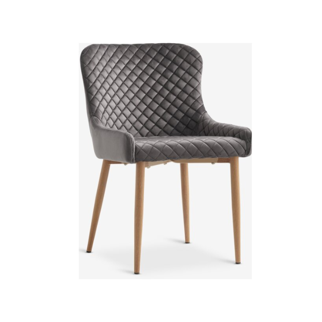 เก้าอี้รับประทานอาหารผ้ากำมะหยี่พร้อมขาไม้-มุมมองด้านข้าง