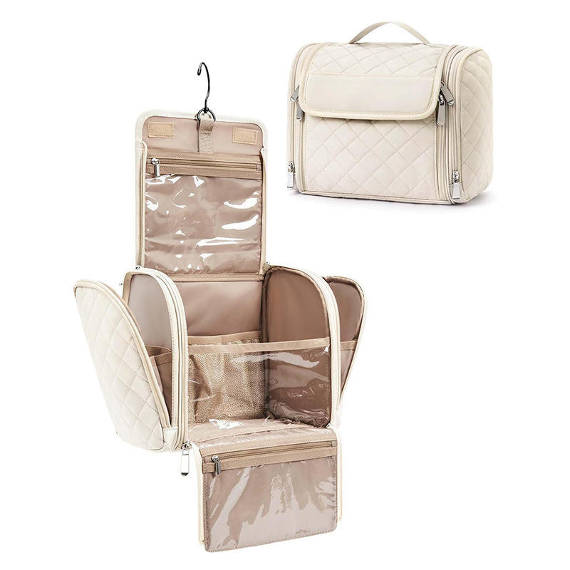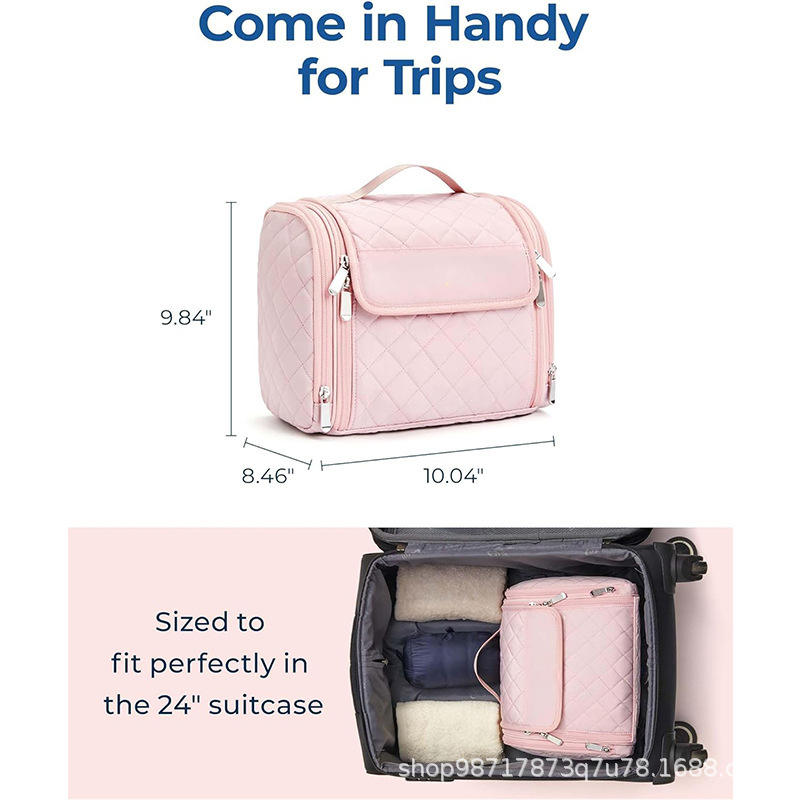 กระเป๋าเครื่องสำอางกันน้ำลายควิลท์มีที่ปิดแบบมีซิปพกพาทันสมัยสำหรับกระเป๋าเครื่องแป้งมัลติฟังก์ชั่นการเดินทางที่บ้าน Amazon ใหม่