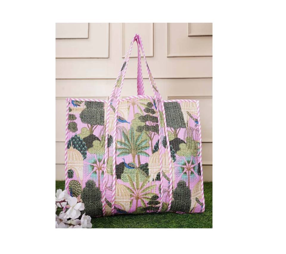 กระเป๋าโท้ทบุผ้าพิมพ์ลายสีครามสีฟ้าอ่อนมีแม่เหล็กปิดด้านในกระเป๋าขนาด XL กระเป๋าช้อปปิ้ง