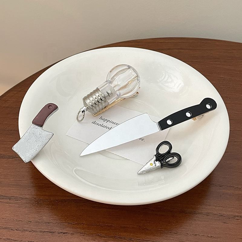 คลิปหนีบผมขนาดเล็กแปลกๆอุปกรณ์เสริมผมกรรไกรจำลองหลอดไฟเครื่องประดับปิ่นปักผมสำหรับผู้หญิงหน้าม้าด้านข้างทำจากพลาสติกสำหรับงานปาร์ตี้