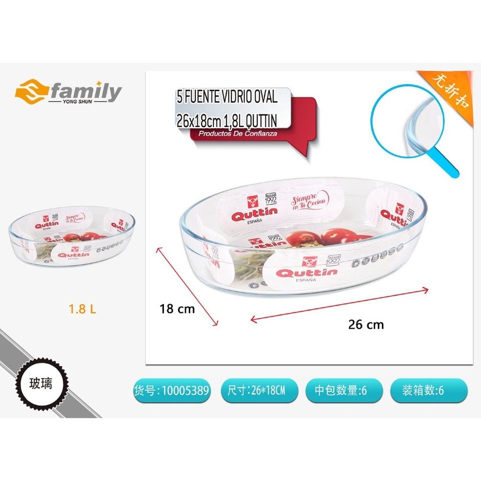 Quttin Oval Glass Dish 26x18 cm, 1.8L - Kitchen and Serving Utensils