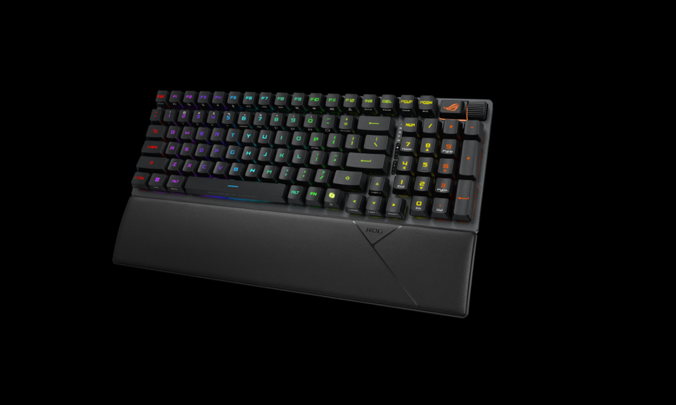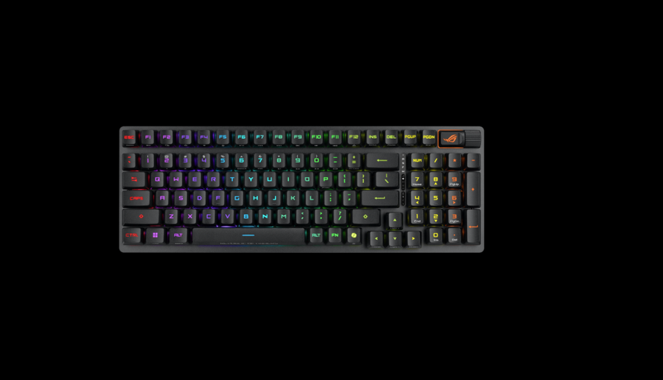 คีย์บอร์ดไร้สาย R-O-G Strix Sco-pe II RX 98 แบบออปติคอลพร้อมสวิตช์แบบกลไก ปุ่มกดตั้งโปรแกรมได้เต็มรูปแบบ